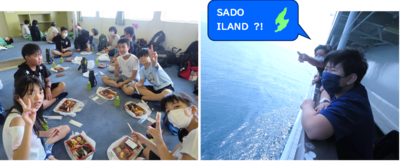 往路のカーフェリーでは、カードゲームをしたり昼食をとったりして過ごしました。船内散策では大海原を目の当たりにして大喜びでした。