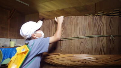 3年生の社会科見学で宮川糀やの味噌蔵に行きました。子どもたちは初めて見る味噌蔵の中に大興奮! いろいろな道具に興味津々でした。ご厚意により、特別にキュウリに味噌を付けて食べさせてもらいました。子どもたちは味噌の味に感激しており、とてもおいしそうに食べていました。