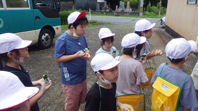 2年生は生活科の学習で、自分たちの住んでいる地域について調べています。琴平清水、金鉢清水へいって清水を飲んだり、地域の方から由来を聞いたりしました。他にも、地域の生花店やパン屋を見学に行きました。お店の方に質問したり、店内の様子をメモしたりしていました。身近なところでも知らないことがまだまだありそうです。