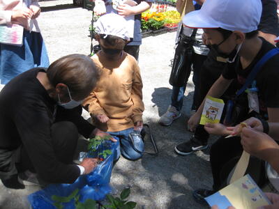 5月10日(火)に2年生は、野菜の苗を買いに住吉神社の市へ出かけました。それぞれが育てたい野菜の苗を買いました。お店の方から、育てるときに気を付けることなどを教えていただきました。