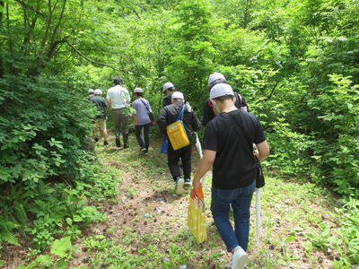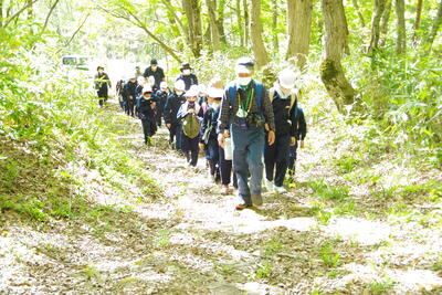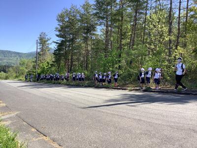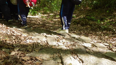 3,4年生は、清川高原保養センターから殿様街道を通り、途中にある集落を目指して歩きました。かつてお殿さまが通ったという石畳を踏みしめて登りました。