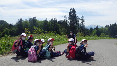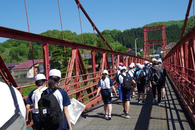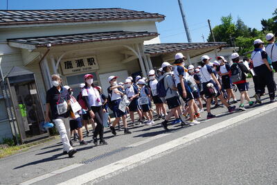 5,6年生は、鹿瀬支所から新潟昭和、そして旧鹿瀬小学校までのルートを約2時間かけて歩きました。随所で講師の方からの説明を聞いて、自分たちの住む町の歴史を学びました。