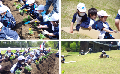 1,2年生はハーバルパークへ行きました。花植えや段ボールでそり遊びなどをして満喫することができました。
