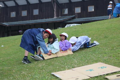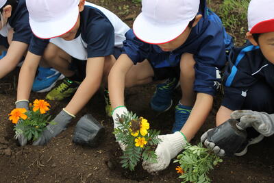 1,2年生はハーバルパークへ行きました。花植えや段ボールでそり遊びなどをして満喫することができました。