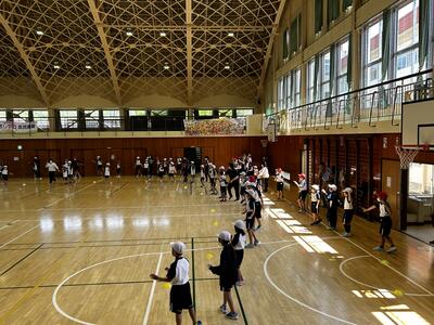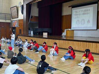 運動会に向けて、「港甚句講習会」を行いました。当日は、講師として津川民謡保存会の方々をお招きし、子ども達に指導をしていただきました。1年ぶりの振り付けに最初は戸惑っていた子もいましたが、授業の最後には流れるように踊れるようになりました。運動会当日は、保護者の皆様と一緒に大きな輪を作りたいと思いますので、ぜひふるってご参加ください。