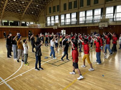 5月15日(水)に、応援団団結式が行われました。4月から練習を始めている応援団ですが、この式をもって正式に発足となりました。体育館に響き渡る立派な自己紹介がありました。力強く赤白各組を引っ張っていってくれることでしょう。
