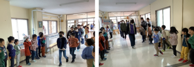 1年生が1日あいさつ隊となって学校中に元気なあいさつを響かせました。給食後、ランチルームから出てきた人たちとも「こんにちは!」とあいさつを交わしました。