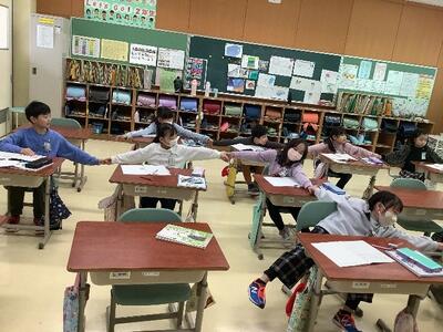 全校でなわとびタイムが実施され、休み時間になると子どもたちが短なわとびの練習に励んでいました。子どもたちは自分の目標に向けて取り組みました。また、学級ごとに長縄の記録にも挑戦し、一体となってがんばりました。