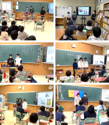 4年生は細かく集めた6年生の情報から作成したクイズを発表しました。