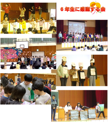 5年生が中心となって企画、運営する「6年生に感謝する会」が開催されました。各学年の発表は気持ちがこもっていました。6年生には、感謝の気持ちが伝わったことでしょう。