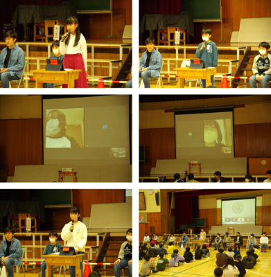 6年生からは、学校生活のおもしろいエピソードを劇にして紹介しました。